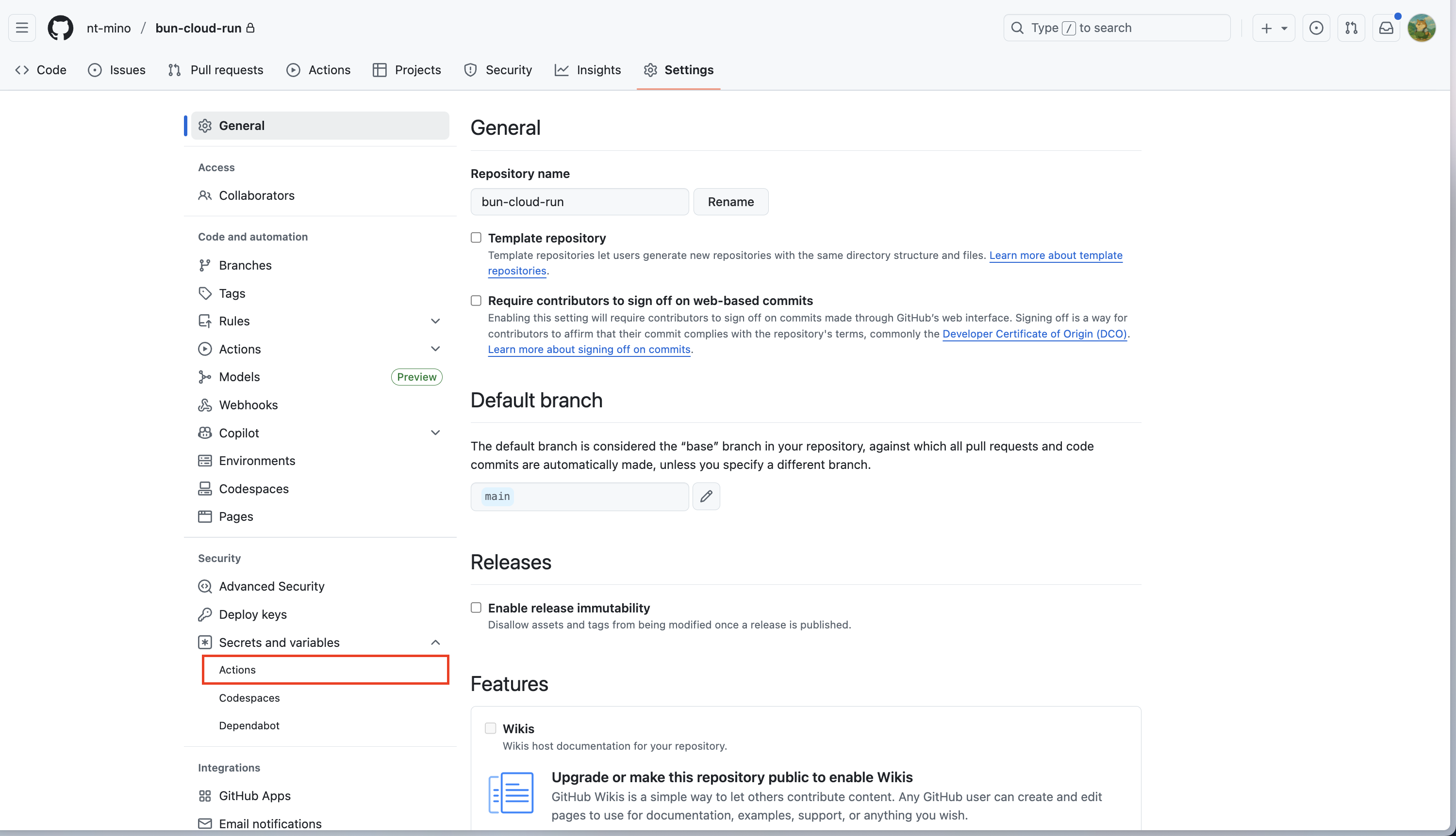 SERVICE_ACCOUNT: github-actions-dev@bun-cloud-run.iam.gserviceaccount.com
